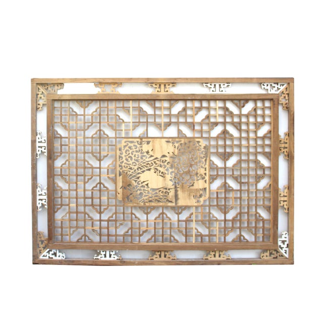 Chinese Rectangular Flower Birds Geometric Wood Wall Decor Chairish