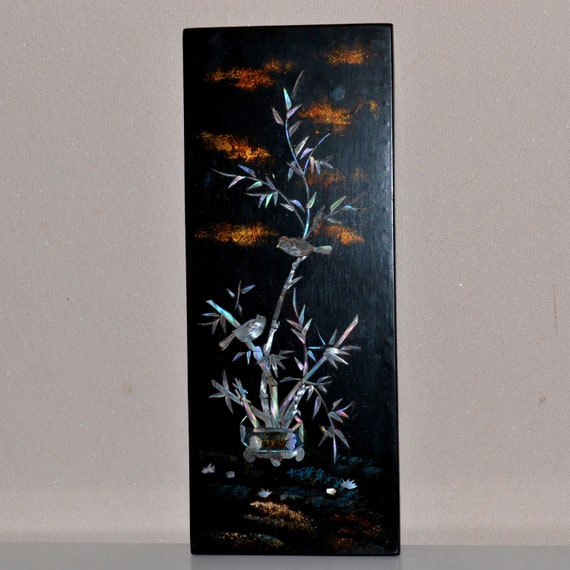 Asian Frame Lacquer Wood Painting Wood Lacquered Panels With Etsy
