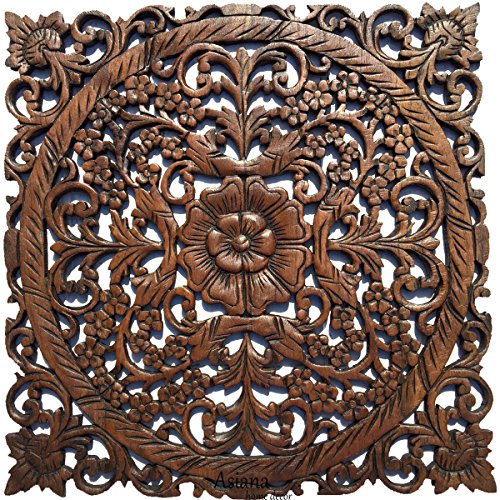 Amazon Com Large Asian Carved Wood Wall Panels Floral Wood Wall
